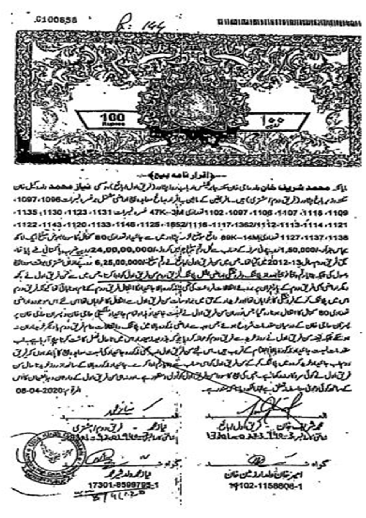 2. Brief facts necessary for adjudication of this matter are that the appellant brought a suit for specific performance of contract executed between the parties on 02.02.2012 and then on 08.04.2020 in respect of properties (detail whereof was mentioned in the headnote of the plaint) seeking cancellation of mutation No. 16457 executed on 02.02.2020 and subsequent mutation No. 16497 executed on 08.04.2020. He also prayed for issuance of permanent injunction restraining the respondents from posing themselves to be owners of the property in dispute, alienating the same by way of sale etc. and making interference in it, perpetually. It was averred that the appellant/ plaintiff is a property dealer by profession. The respondents/ defendants and their deceased brother namely Muhammad Sharif Khan are the successors of Haji Khan, commonly known as Warkotay Haji, who had purchased huge immovable properties in the name of the respondents/ defendants and their step brothers. The said deceased brother of the respondents/ defendants and his partners had purchased landed properties at moza Hargoi, moza Ranogardhi and moza Sardar Garhi through mutations. The appellant/plaintiff and his partners, on some portion of land, planned to establish a housing society with the name of “Alnamra Town” at Ring Road, Shinwari Town, Peshawar, and after plotting, plots were sold to different people. The property in dispute was purchased from the said deceased brother of the respondents/ defendants (Muhammad Sharif) @ Rs. 150,000/- per marla and out of total sale consideration (Rs. 24,00,00,000) Rs. 62500,000/- was paid to him as earnest money in presence of the marginal witnesses of the agreement at Alnamra property centre situated at Ring Road, Peshawar. Consequently, possession of the property in dispute was handed over to him, which is still in possession and occupation of the appellant/ plaintiff. Soon after sale of the property in dispute, the step brothers of the said Muhammad Sharif filed civil suits, which are pending adjudication in different Courts of law, due to which the appellant/ plaintiff could not materialize the sale and plotting of the said land, and till now, the suit property is in possession and occupation of the appellant and his partner namely Niaz Muhammad alias Niazbeen through their tenant namely Alamzeb. It was further averred that the remaining sale consideration was payable to the respondents/ defendants after plotting and sale of the property in dispute as is evident from the agreement and due to civil dispute and litigations over the suit property, the agreement is yet to be acted upon between the parties. On 08.04.2020, the predecessor-in-interest of the parties renewed the said contract in presence of its marginal witnesses. It was pleaded in the plaint that the respondents/ defendants were asked to accept the claim of the appellant over the suit property by acting upon the terms and conditions of the agreement, but all his efforts in this respect proved to be a wild goose chase, which necessitated to file the present case.
